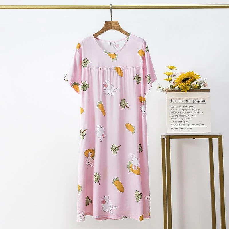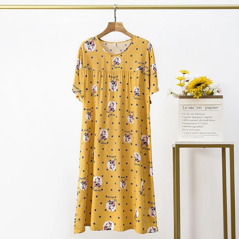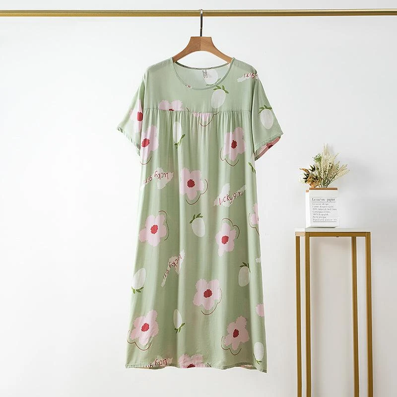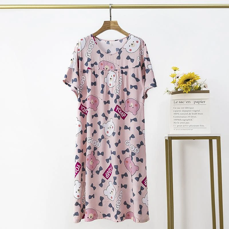 Be the first to review “Cotton Silk Nightdress Women’s Summer Thin Section Large Size Cartoon Short-sleeved Pajamas Artificial Cotton Long Dress Outerwear Home Service” Cancel reply