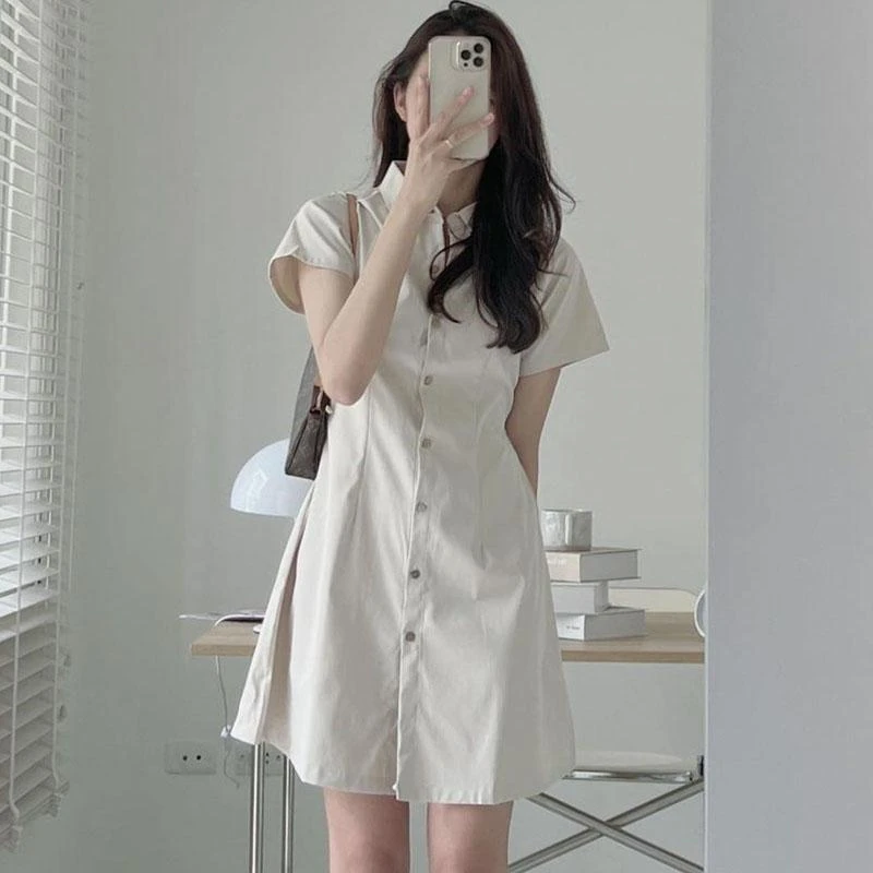 Be the first to review “Korean Summer Simple Temperament Lapel Single-breasted Button Waist Slimming Short-sleeved Shirt-style Petite Dress” Cancel reply
