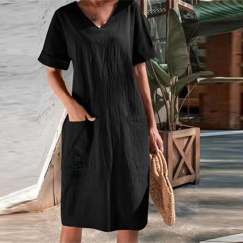 Be the first to review “Women’s Casual Dress Cotton Linen Dress Midi Dress Linen Cotton Blend Casual Daily Holiday Going Out V Neck Pocket Rolled Cuff Short Sleeve Summer Spring 2023 Loose Fit Black White Wine Pure Color S” Cancel reply