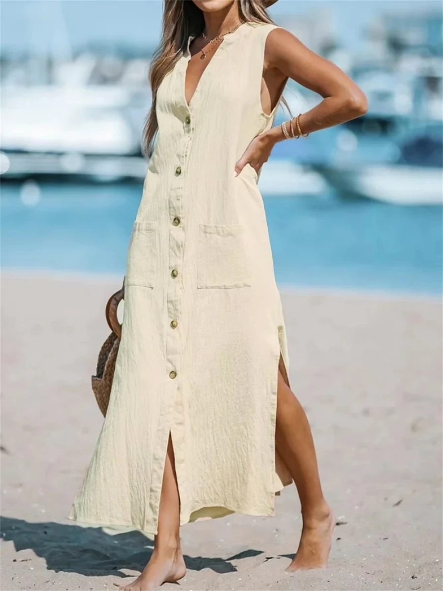 Be the first to review “Women’s Casual Dress Cotton Linen Dress Shift Dress Maxi Long Dress Cotton Blend Fashion Modern Outdoor Daily Vacation V Neck Button Pocket Sleeveless Summer Spring 2023 Loose Fit Light Blue Black” Cancel reply