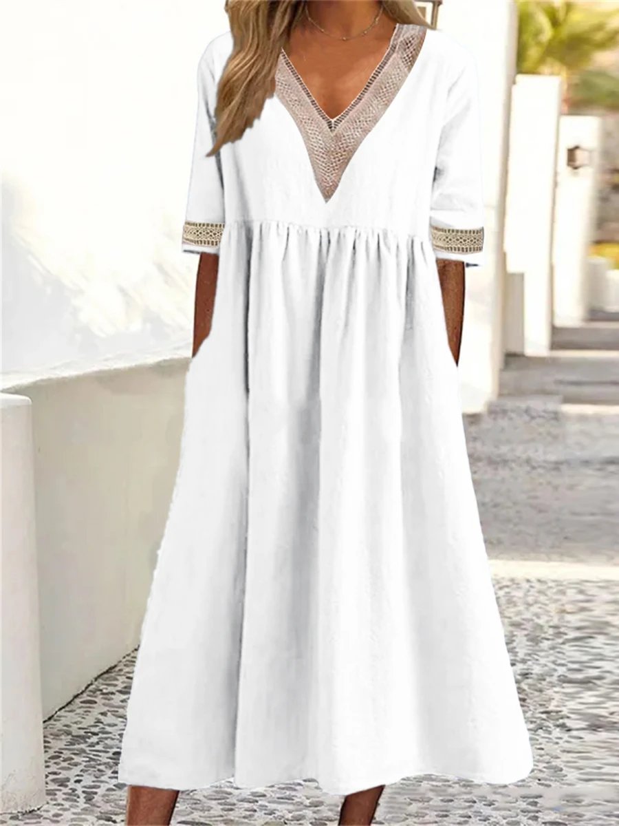 Be the first to review “Women’s Casual Dress Cotton Linen Dress Swing Dress Midi Dress Cotton Blend Fashion Basic Outdoor Daily Vacation V Neck Lace Ruched Half Sleeve Summer Spring Fall 2023 Loose Fit White Pink Blue Plain” Cancel reply