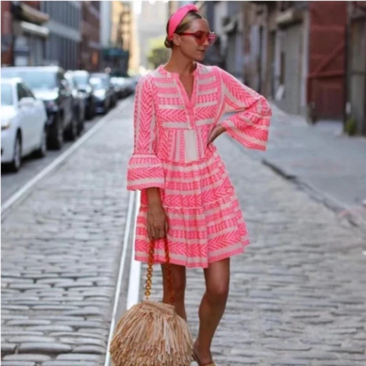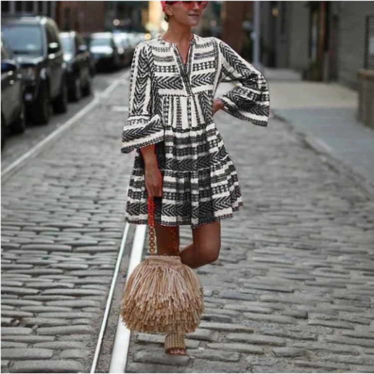 Be the first to review “Women’s Casual Dress Ethnic Dress Geometric Striped Print Smocked V Neck Flare Cuff Sleeve Mini Dress Gothic Boho Daily Holiday 3/4 Length Sleeve Loose Fit Summer Spring S M L XL XXL” Cancel reply