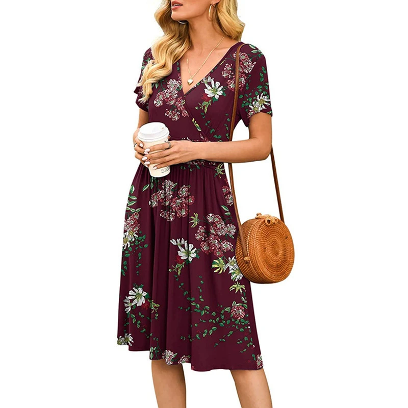 Be the first to review “Women’s Casual Dress Sundress Midi Dress Wave Point Burgundy Print Short Sleeve Floral Print Summer Spring V Neck Romantic Vacation Summer Dress Spring Dress 2023 S M L XL XXL” Cancel reply