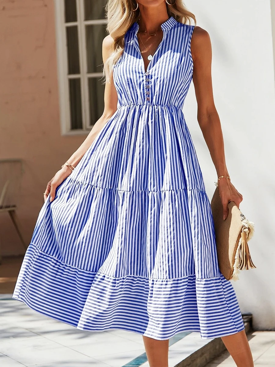 Be the first to review “Women’s Casual Dress Swing Dress Tank Dress Stripe Button Print V Neck Midi Dress Fashion Modern Daily Holiday Sleeveless Regular Fit Blue Summer Spring S M L XL XXL” Cancel reply