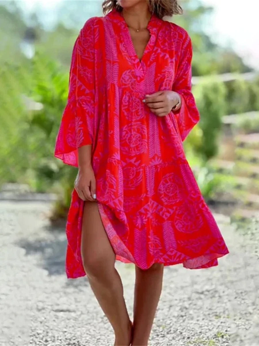 Be the first to review “Women’s Casual Dress Swing Dress Tiered Dress Floral Geometric Ruffle Print V Neck Midi Dress Fashion Modern Daily Holiday 3/4 Length Sleeve Loose Fit Fuchsia Summer Spring S M L XL XXL” Cancel reply