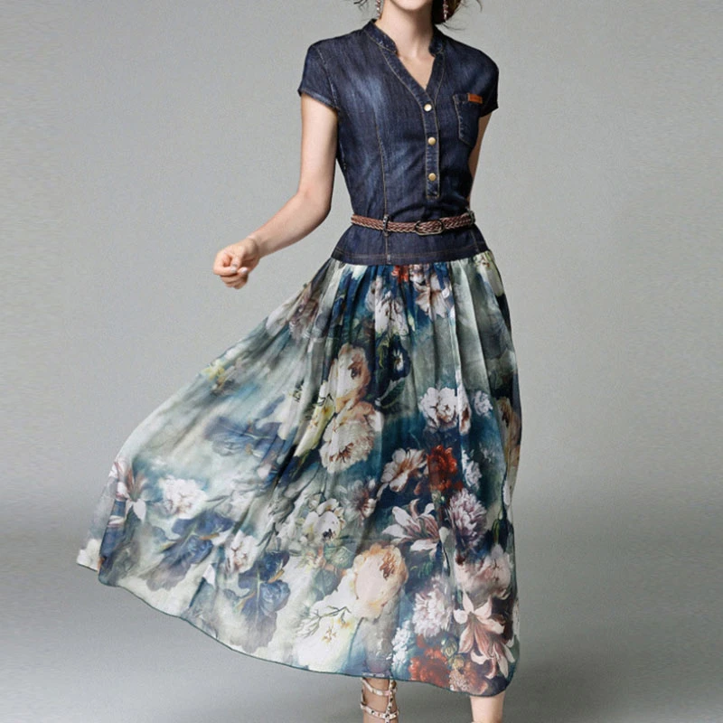 Be the first to review “Women’s Denim Dress Swing Dress Modern Dress Maxi Long Dress Denim Stylish Elegant Formal Outdoor Daily V Neck Patchwork Embroidered Short Sleeve Summer Spring Fall 2023 Regular Fit Black Blue Floral” Cancel reply