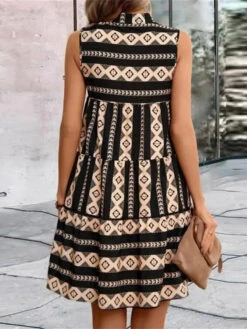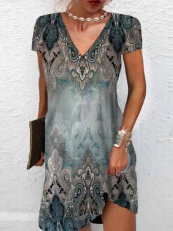 Women’s Tribal Print V Neck Mini Dress Vintage Ethnic Daily Date Short Sleeve Summer Spring