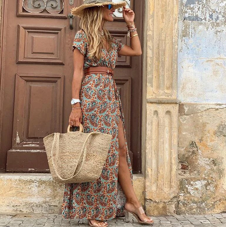 Be the first to review “Women’s Floral Print Ruffle Belted Surplice Neck Maxi Long Dress Bohemia Classic Daily Short Sleeve Summer Spring” Cancel reply