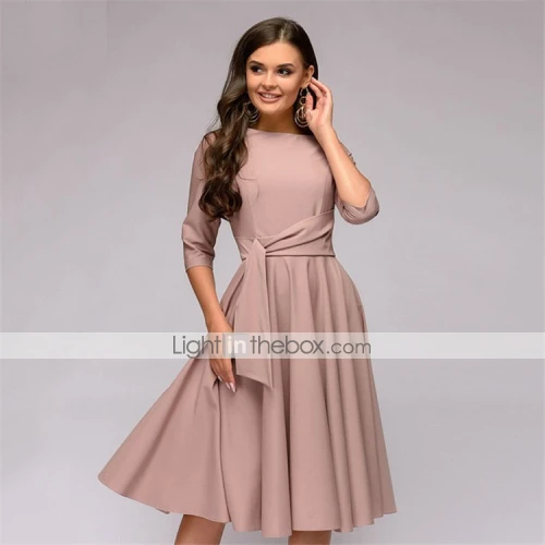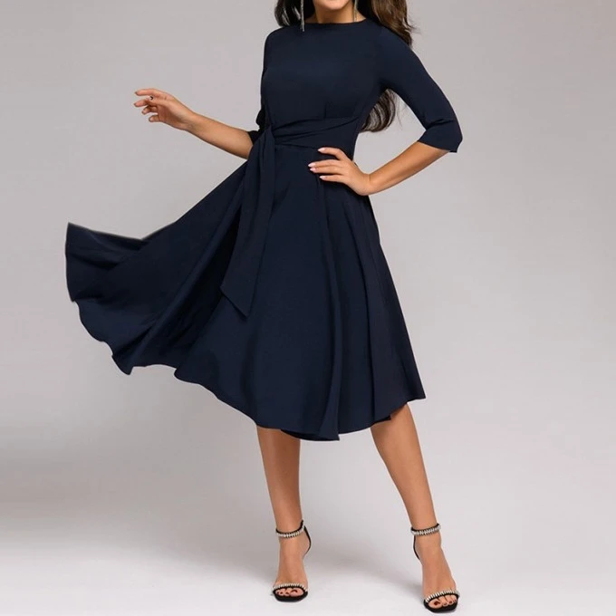 Be the first to review “Women’s Party Dress Tie Front Belted Crew Neck 3/4 Length Sleeve Midi Dress Elegant Classic Navy Blue Beige Spring” Cancel reply