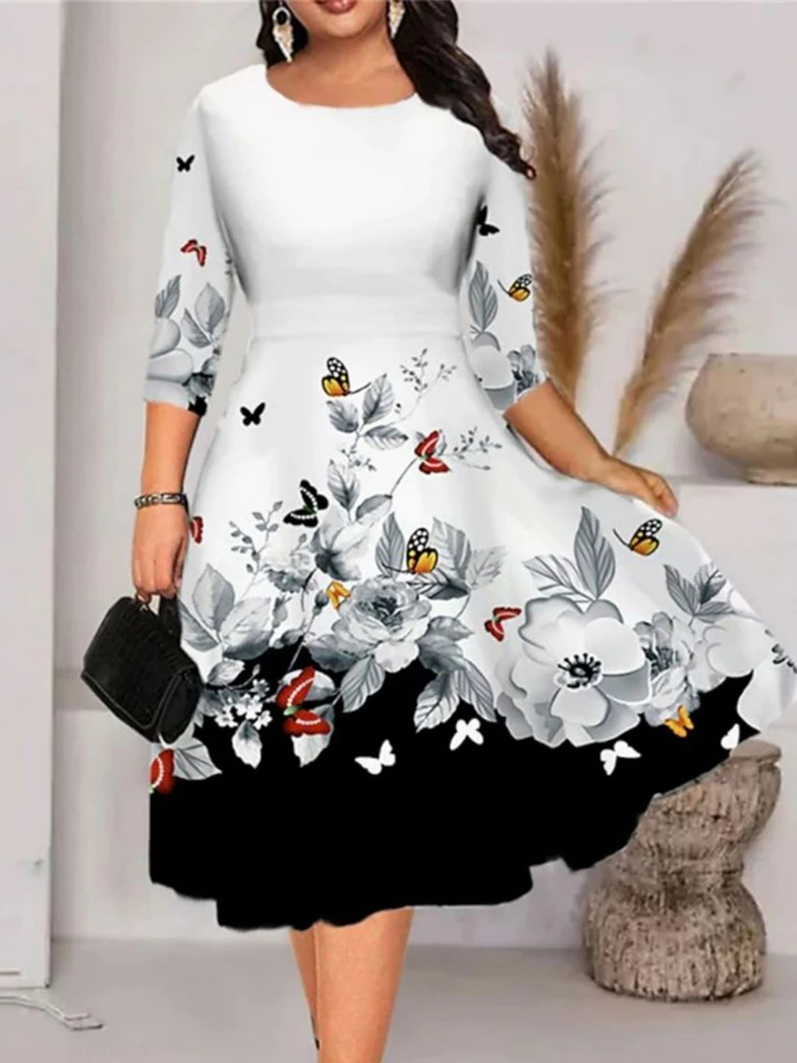 Be the first to review “Women‘s Plus Size Curve Work Dress A Line Dress Leaf Floral Midi Dress Half Sleeve Print Crew Neck Elegant Office Black White Spring Summer XL XXL 3XL 4XL 5XL” Cancel reply