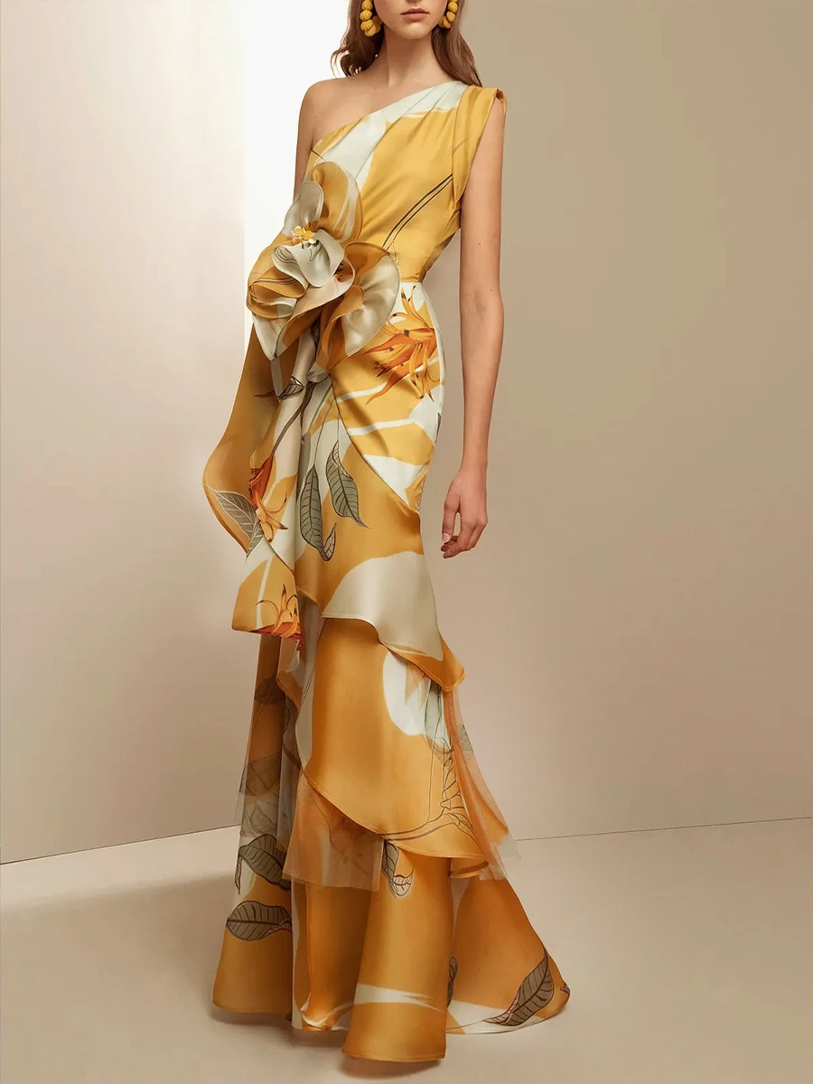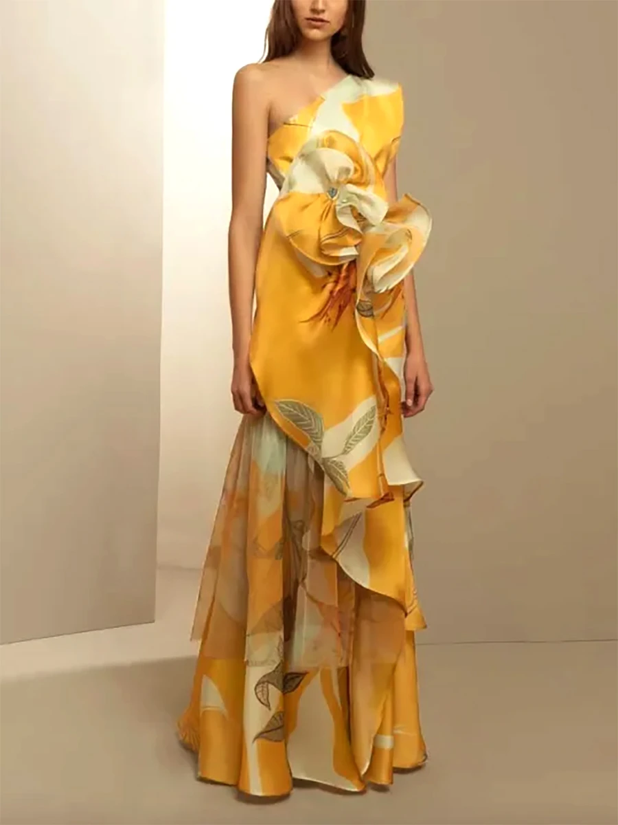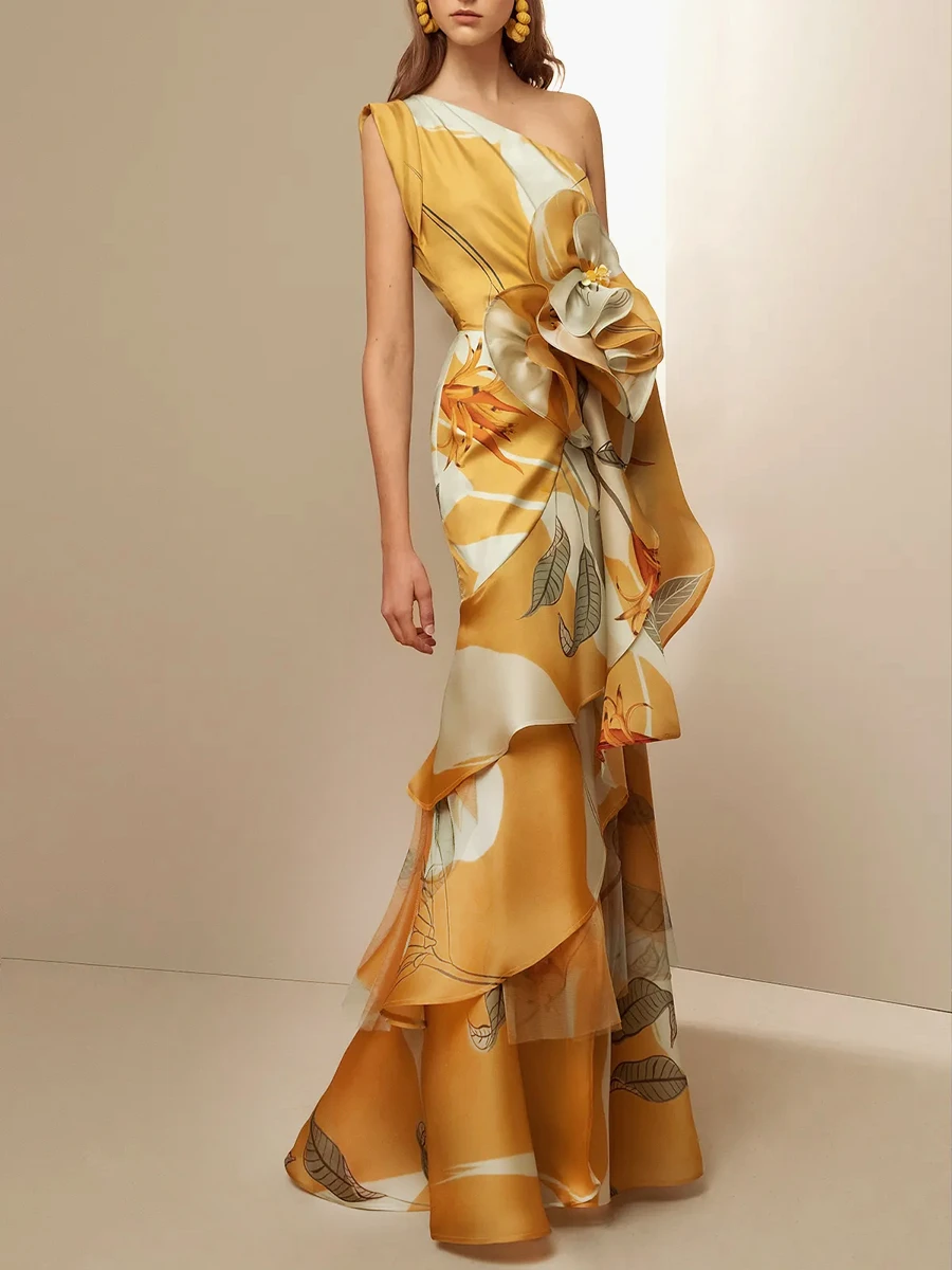 Be the first to review “Women’s Prom Dress Party Dress Ruffle Layered One Shoulder Sleeveless Print Birthday Summer Dress Vintage Formal Yellow Summer Spring” Cancel reply