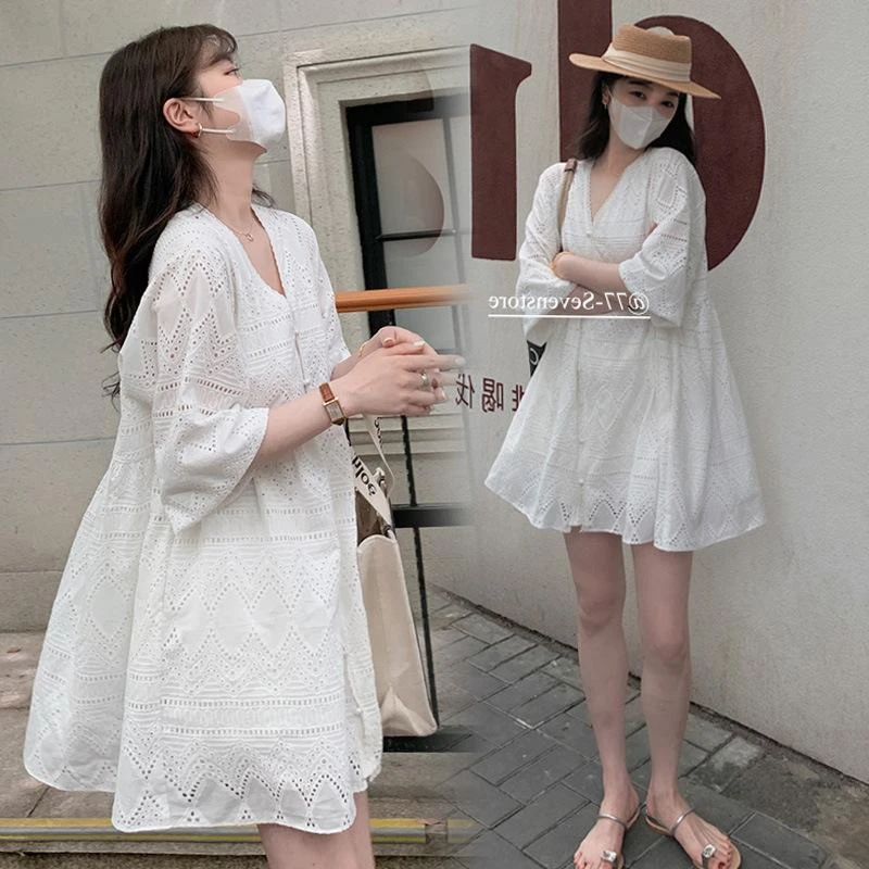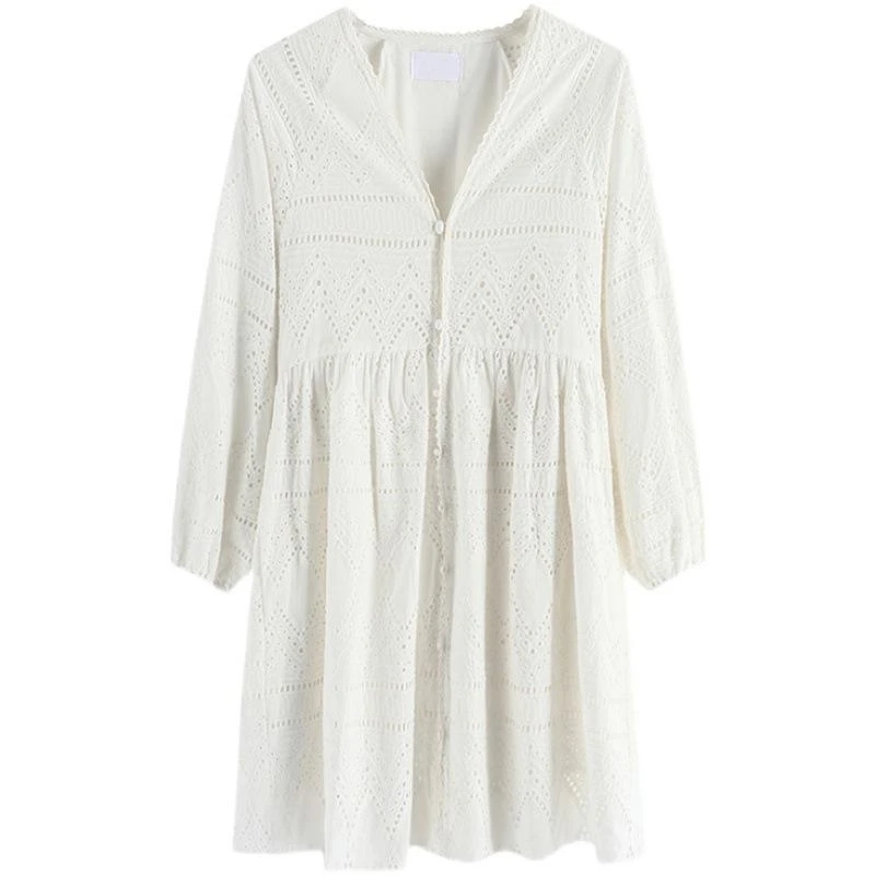 Be the first to review “Women’s Spring And Summer Korean Version Of Large Size V-neck Hollow Embroidery Dress Casual Outer Wear Gentle Wind Small Dress” Cancel reply