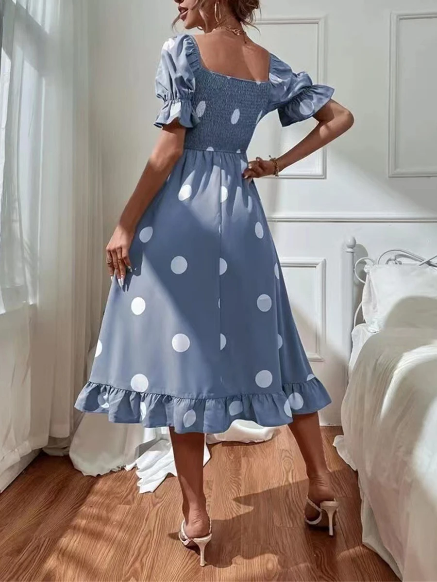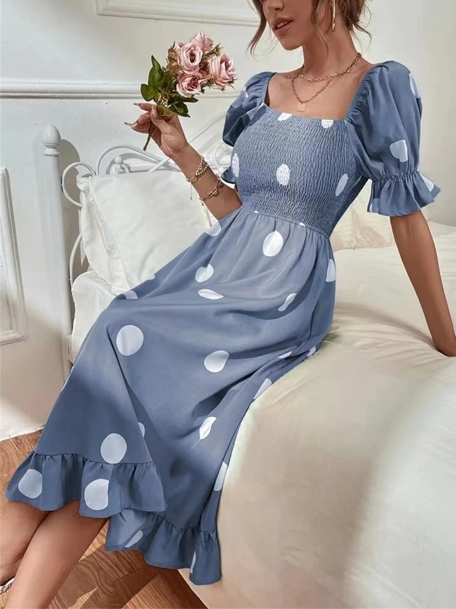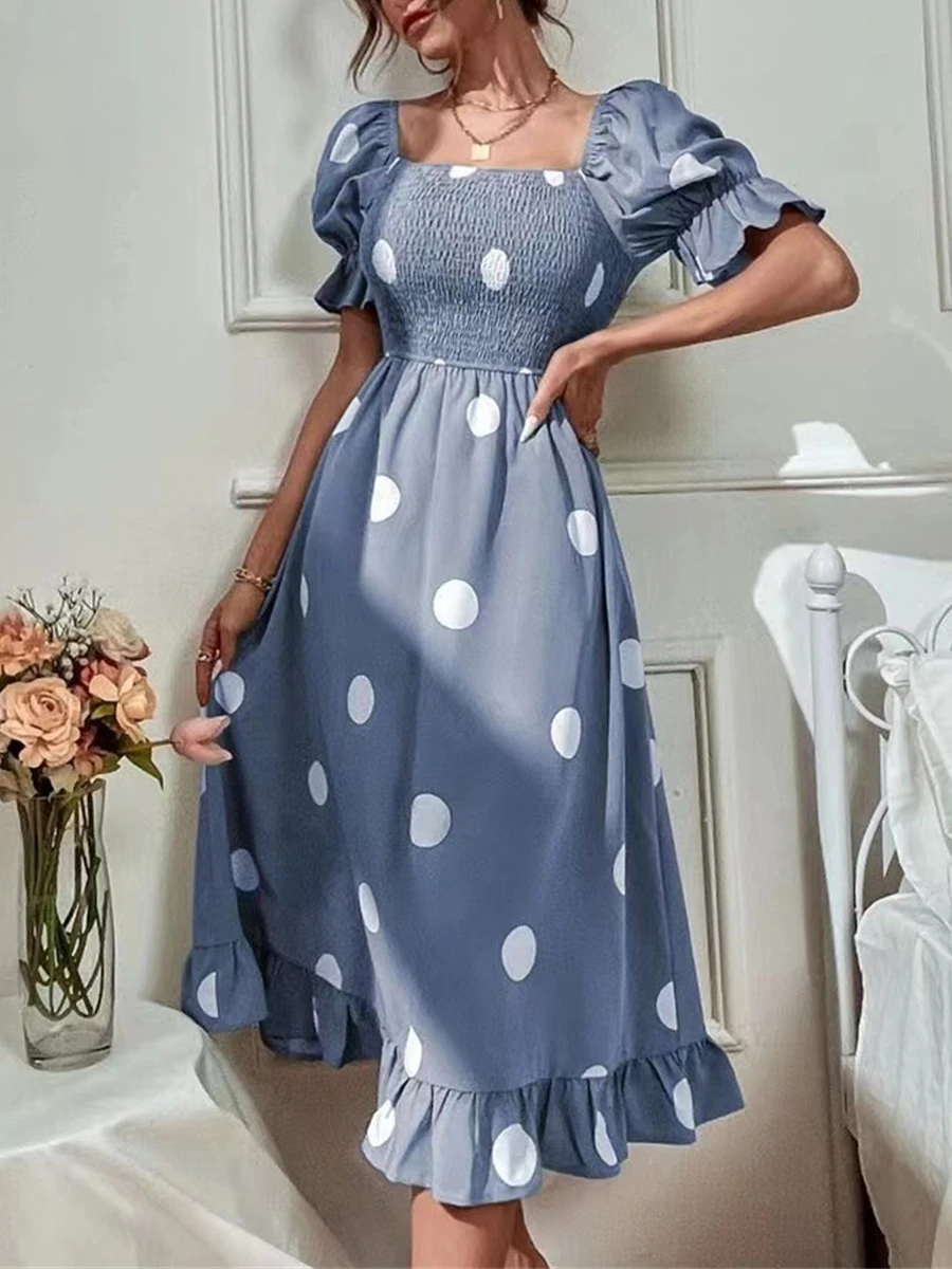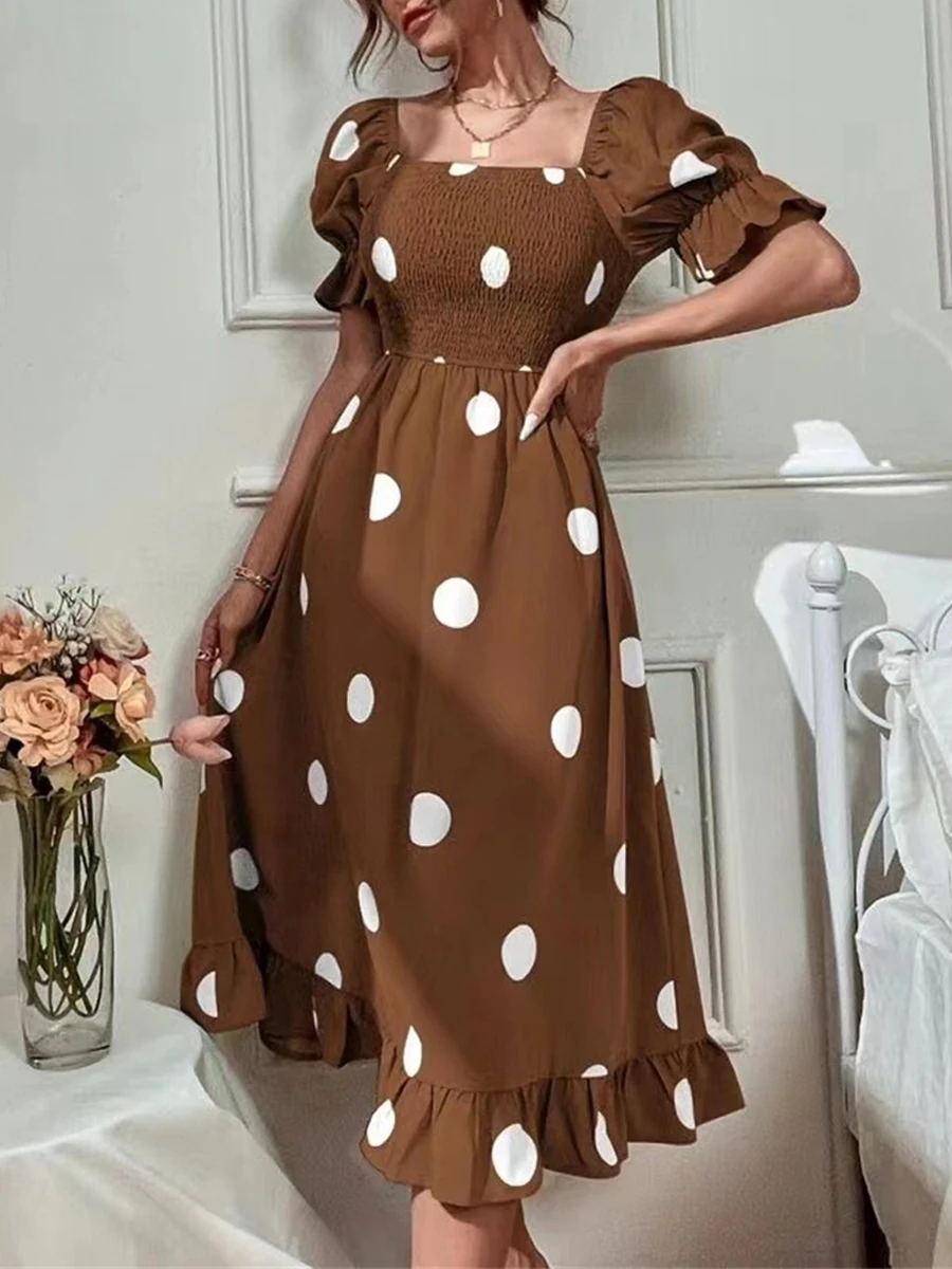 Be the first to review “Women’s Summer Dress Polka Dot Dress Polka Dot Print Ruched Square Neck Midi Dress Fashion Modern Daily Holiday Short Sleeve Slim Black Blue Brown Summer Spring S M L XL” Cancel reply