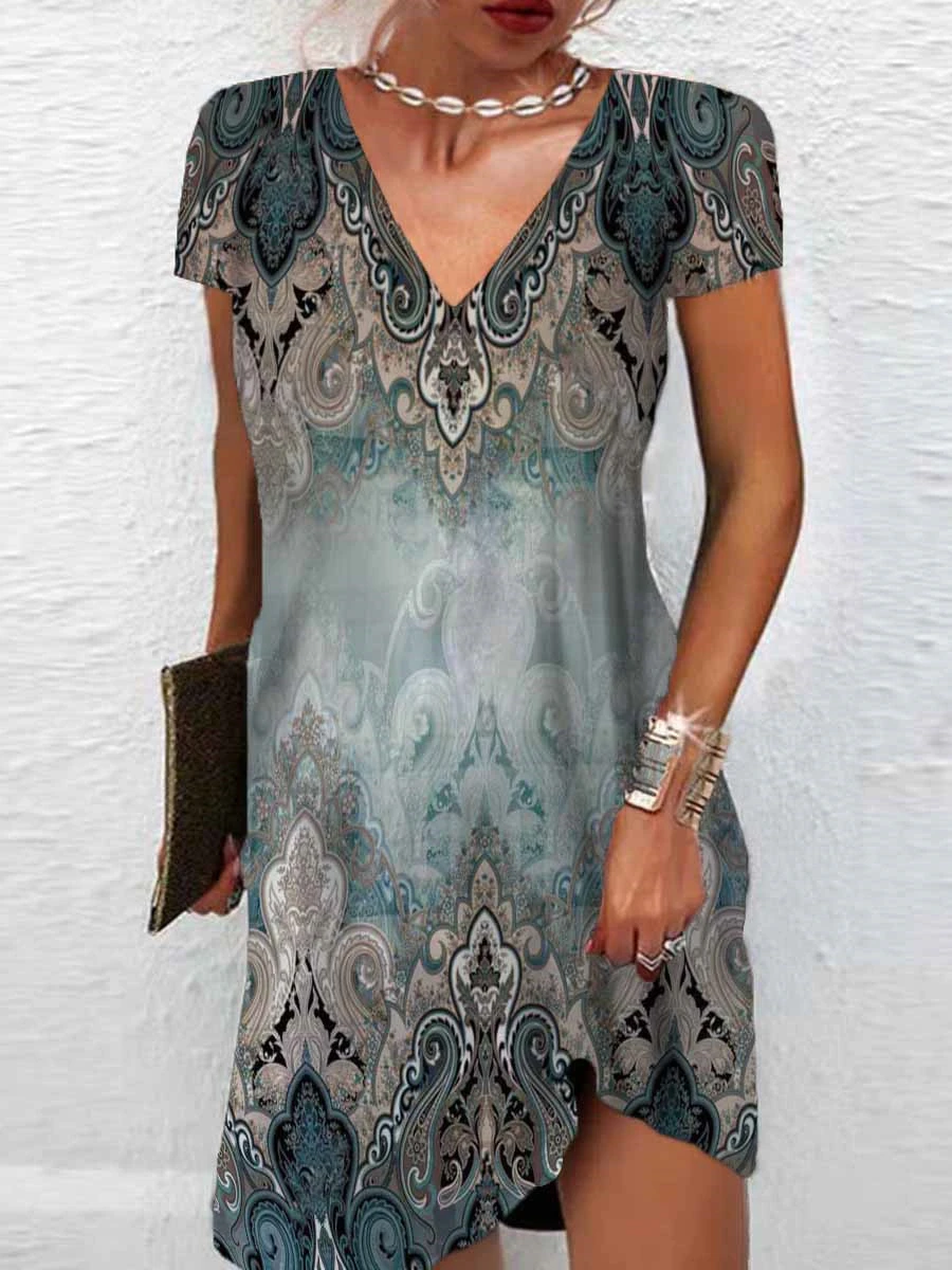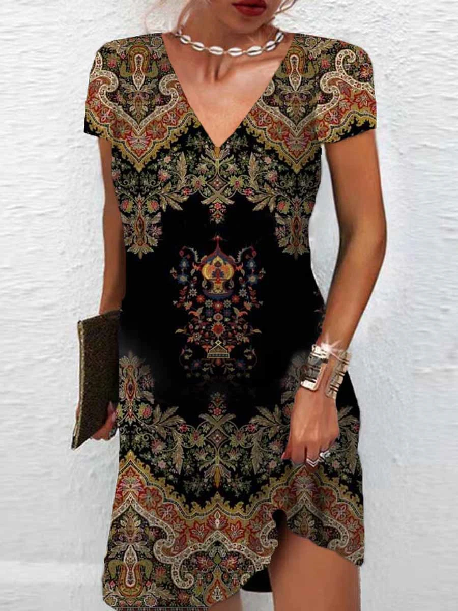 Be the first to review “Women’s Tribal Print V Neck Mini Dress Vintage Ethnic Daily Date Short Sleeve Summer Spring” Cancel reply