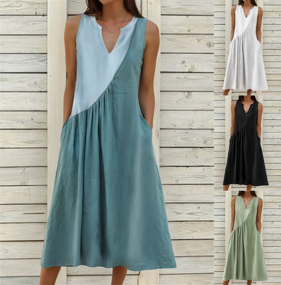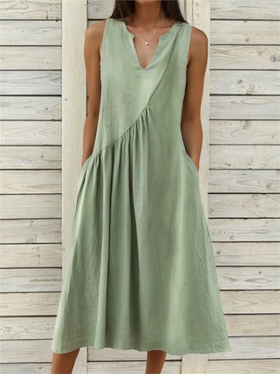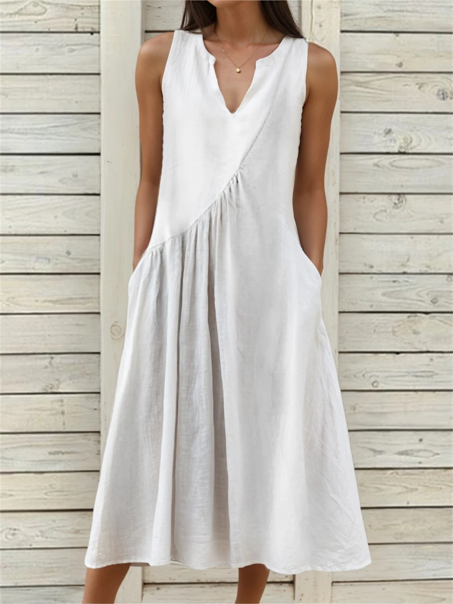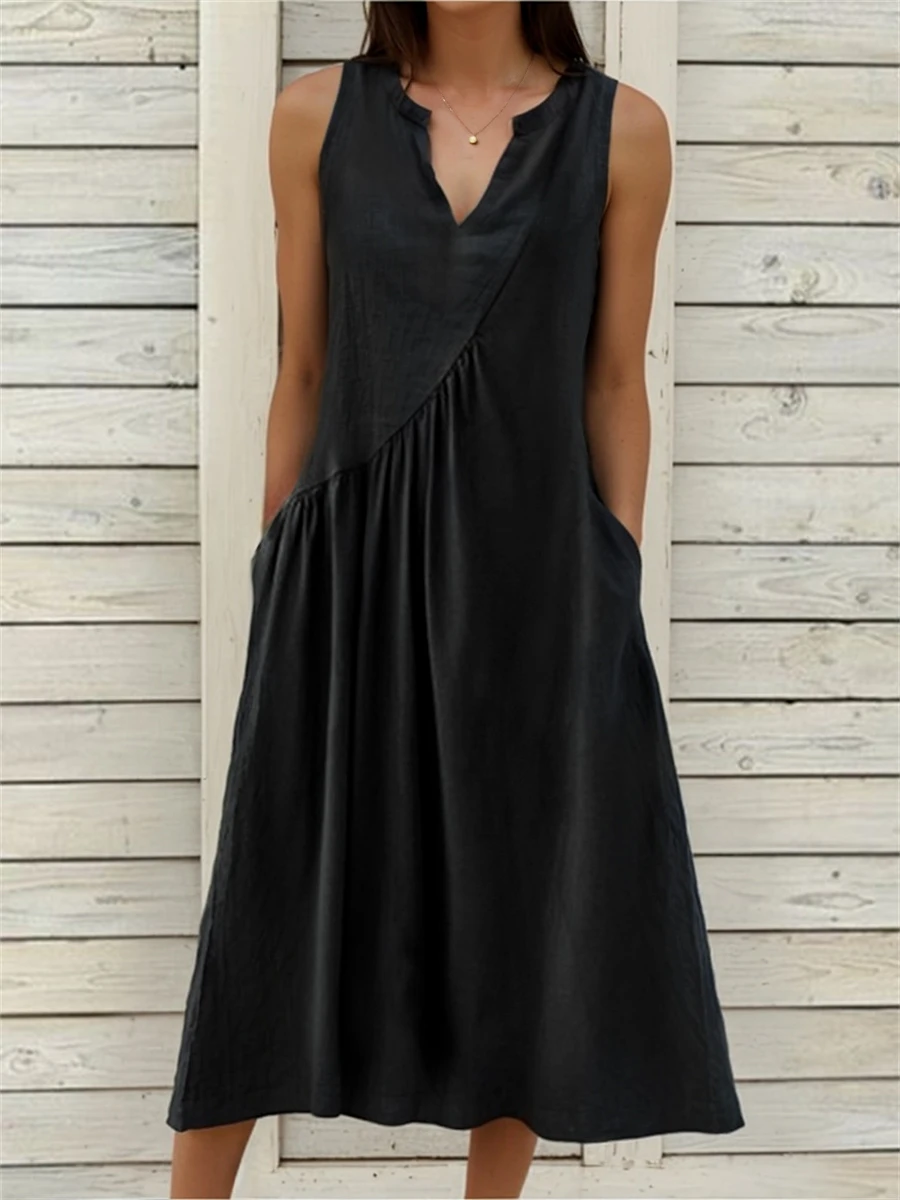 Be the first to review “Women’s White Dress Cotton Linen Dress Midi Dress Linen Ruched Pocket Basic Casual Daily Vacation V Neck Sleeveless Summer Spring Black White Plain” Cancel reply
