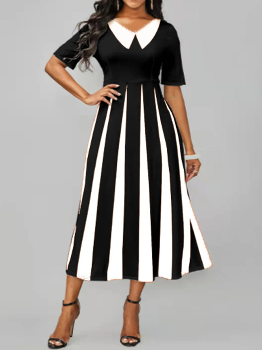 Be the first to review “Women’s Work Dress Semi Formal Dress A Line Dress Fashion Midi Dress Print Shirt Collar Short Sleeve Color Block Stripe Regular Fit Black Wine Royal Blue Summer Spring S M L XL XXL” Cancel reply